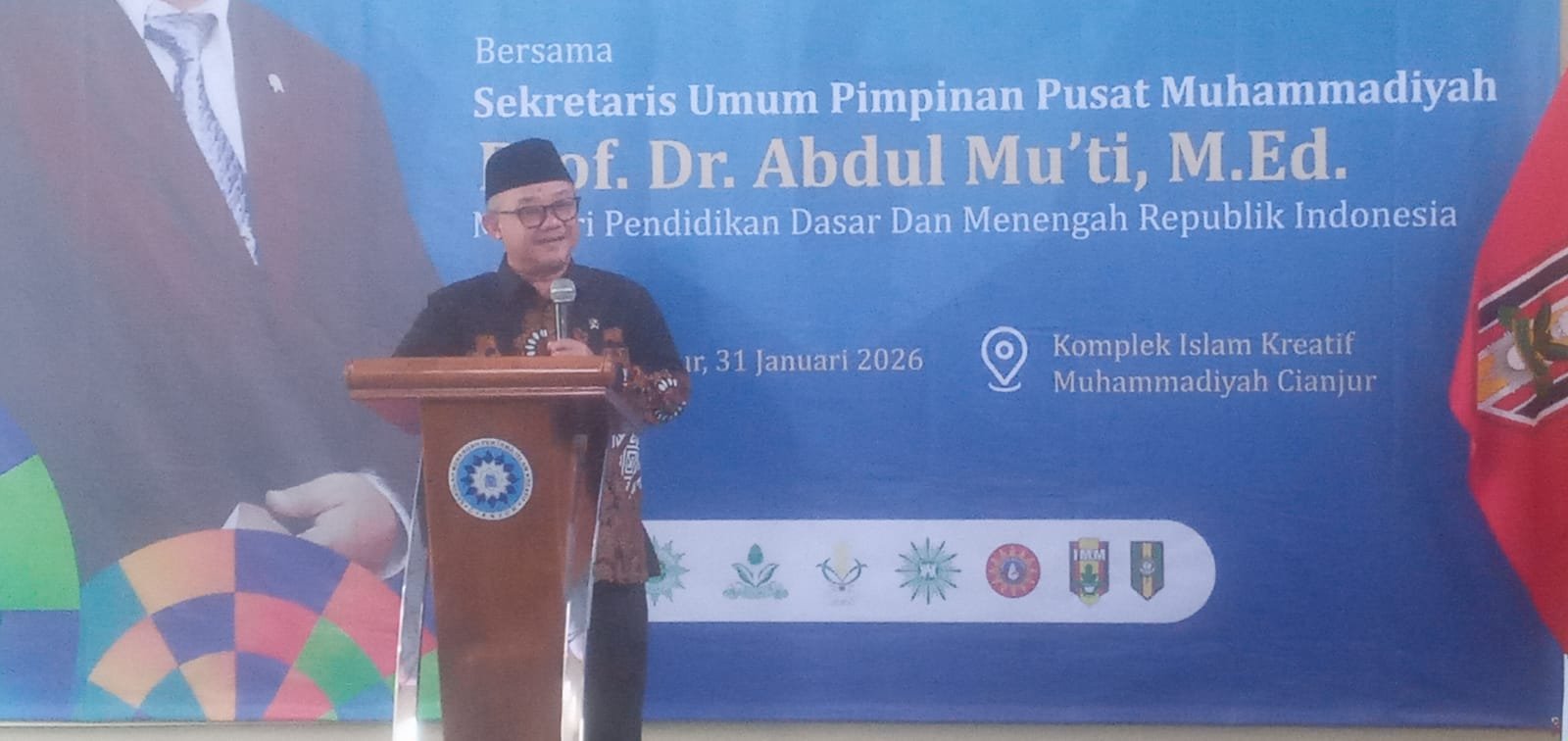 kegiatan ini dihadiri langsung oleh Menteri Pendidikan Dasar dan Menengah RI, Prof. Dr. Abdul Mu’ti, M.Ed., yang disambut hangat oleh Bupati Cianjur, Dr. Muhammad Wahyu, Wakil Bupati, serta jajaran PDM, PCM, PRM, organisasi otonom (Ortom), dan ribuan jemaah Muhammadiyah se-Kabupaten Cianjur.