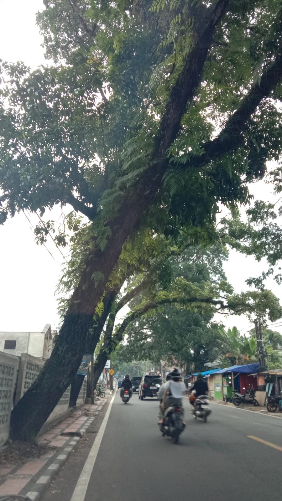 Cianjur, Jawa Barat — Di tengah derasnya hujan dan sapuan angin kencang belakangan ini, pemandangan di sejumlah ruas jalan Kabupaten Cianjur tampak mengkhawatirkan. Sejumlah pohon besar tampak doyong ke arah badan jalan, sebagian bahkan condong menimpa kabel listrik dan nyaris menyentuh atap kendaraan yang melintas.