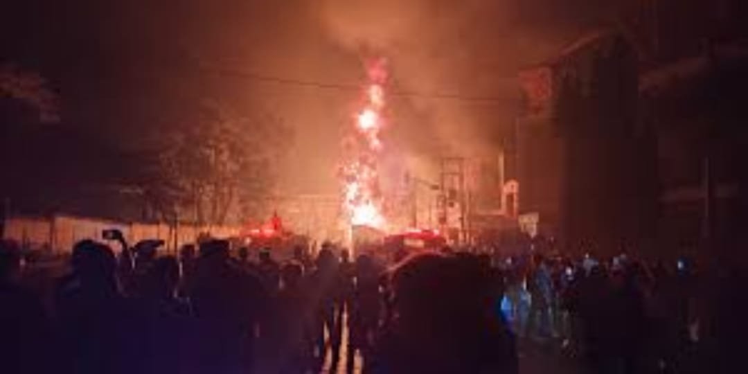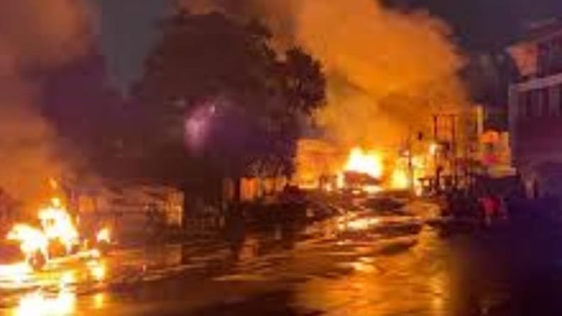 Setelah terguling, minyak/bahan bakar dari tangki diduga mengalir, muncul percikan api, dan api segera menjalar ke bangunan di sekitarnya: ruko, kantor bank, kantor pos polisi, dan kendaraan yang diparkir.